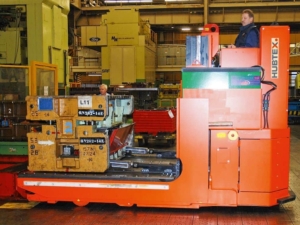 The tool changers from HUBTEX are characterized by their compact dimensions, as the entry situation for pressing and stamping tools or other machines is usually very confined. This is made possible by the individual frame structure of the vehicle.
